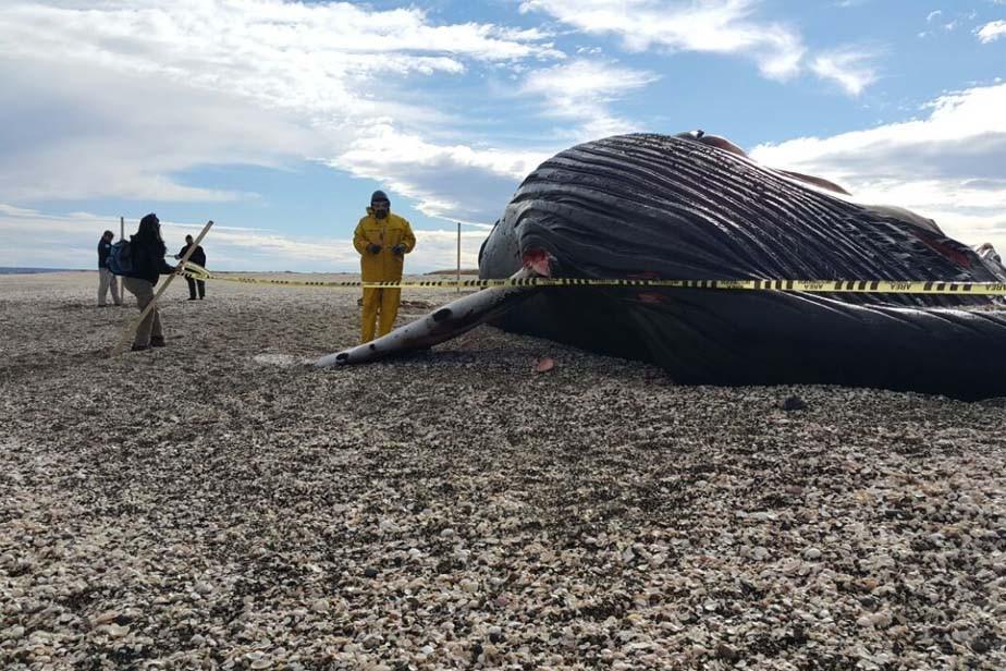 Técnicos comenzaron hoy la necropsia del cuerpo de la ballena jorobada que apareció el fin de semana pasado en costas de la Bahía de San Antonio, con el objetivo de determinar las causas de su muerte.